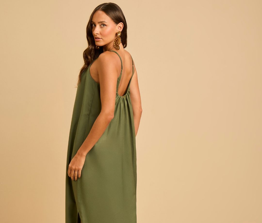 Algumas tonalidades funcionam como curingas e resolvem praticamente qualquer produção com vestido verde. Nude e bege: São as opções mais seguras e elegantes. Criam leveza, alongam a silhueta e deixam o vestido como protagonista. Funcionam perfeitamente para o dia a dia e ambientes profissionais. Preto: Traz contraste e sofisticação imediata. Ideal para eventos noturnos, jantares ou ocasiões que pedem mais presença. É clássico, urbano e sempre elegante. Tons terrosos: Caramelo, conhaque e marrom criam uma combinação natural e harmônica com o verde. O visual fica acolhedor, moderno e muito chic, especialmente em produções diurnas. Metalizados: Dourado, prata e rosé elevam o look instantaneamente. São perfeitos para festas, casamentos e eventos especiais, adicionando glamour na medida certa.